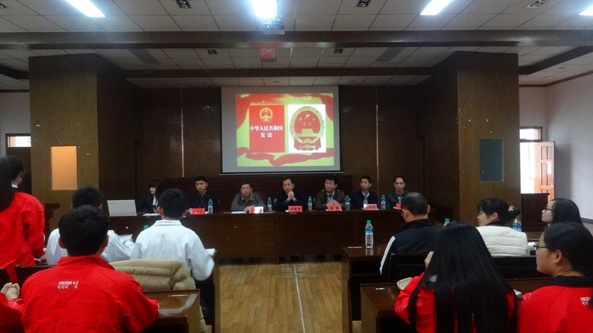 为贯彻落实党的十八届四中全会关于全面推进依法治国主题,增强我院师生对现行宪法体系的了解,强化法治意识,自11月4日我校筹备组建大学生法治宣讲团以来,深入开展了12.4国家宪法日暨全国法制宣传日系列活动,期间副校长许斌华出席指导活动,校团委书记高鹏、学院在家领导陪同参加。