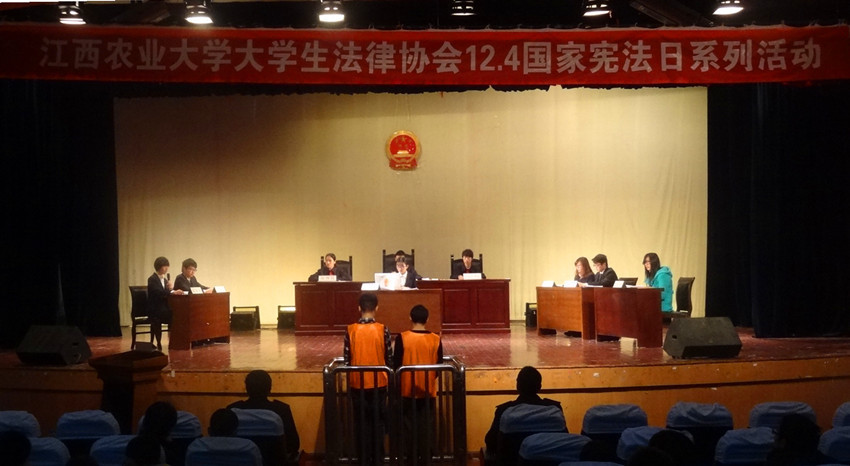11月30日,大学生法律协会开展了宪法宣誓、模拟法庭以及普法情景剧系列宣传活动。面对庄严肃穆的国徽,大学生立誓学习法律知识、捍卫宪法权威;逼真、严谨的模拟法庭表演,让师生感受法律的威严;以“反腐倡廉”为主题的普法情景剧,讲述了一位勤政廉洁的人民好公仆。