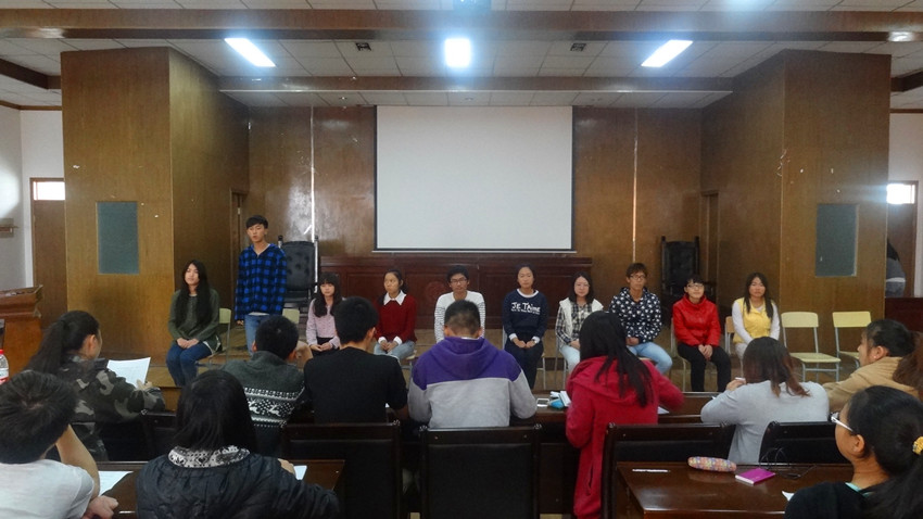 11月23日我院第十二届学生会干事选拔第二轮面试在我院院办504进行。院团委指导老师王桂兰以及院学生会全体部长及副部担任此次面试竞选的评委。