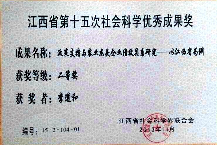 根据《江西省社会科学优秀成果奖评选实施办法》和《江西省第十五次社会科学优秀成果奖评选实施细则》的规定,我省于2013年4月16日—5月15日期间开展江西省第十五次社会科学优秀成果申报,并于近日公布获奖名单。我院李道和副院长撰写的《政策支持与农业龙头企业绩数关系研究——以江西省为例》论文荣获本次评选活动二等奖,我院中文教研室潘志刚博士撰写的《论敦煌变文中“忽”类假设连词》论文荣获本次评选活动三等奖。