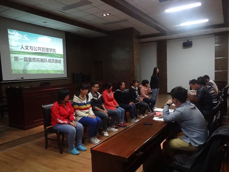 为进一步加强大学生团队意识和团队协作能力,提升我院学生综合素质,本学年筹备组建素质拓展队,11月10日至13日,首批素质拓展队成员一面和二面分别在院办504、院办四楼会议室顺利开展,团委老师宋琳,各团委学生委员、学生会主席戴建杰,社团联合会会长杨鹏担任面试官参加面试。