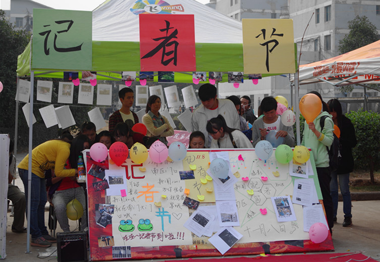 为了迎接记者节的到来,向全校师生展示记者文化,11月8日,由我院新闻1201团支部承办的第三届校园记者文化节活动在南区门口成功开展。