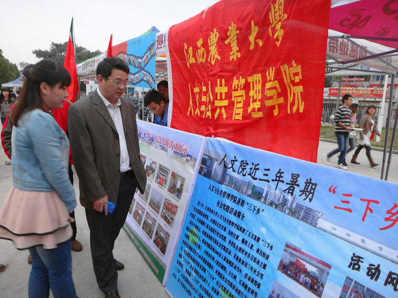 在全校开展暑期“三下乡”社会实践活动展示之际,我院积极响应学校号召,于10月19日在南区门口对我院2013年及近三年暑期“三下乡”社会实践活动进行了展示。学工部(处)长左辉群、校团委副书记郭军海一行在院团委老师宋琳陪同、介绍下莅临我院参观指导。