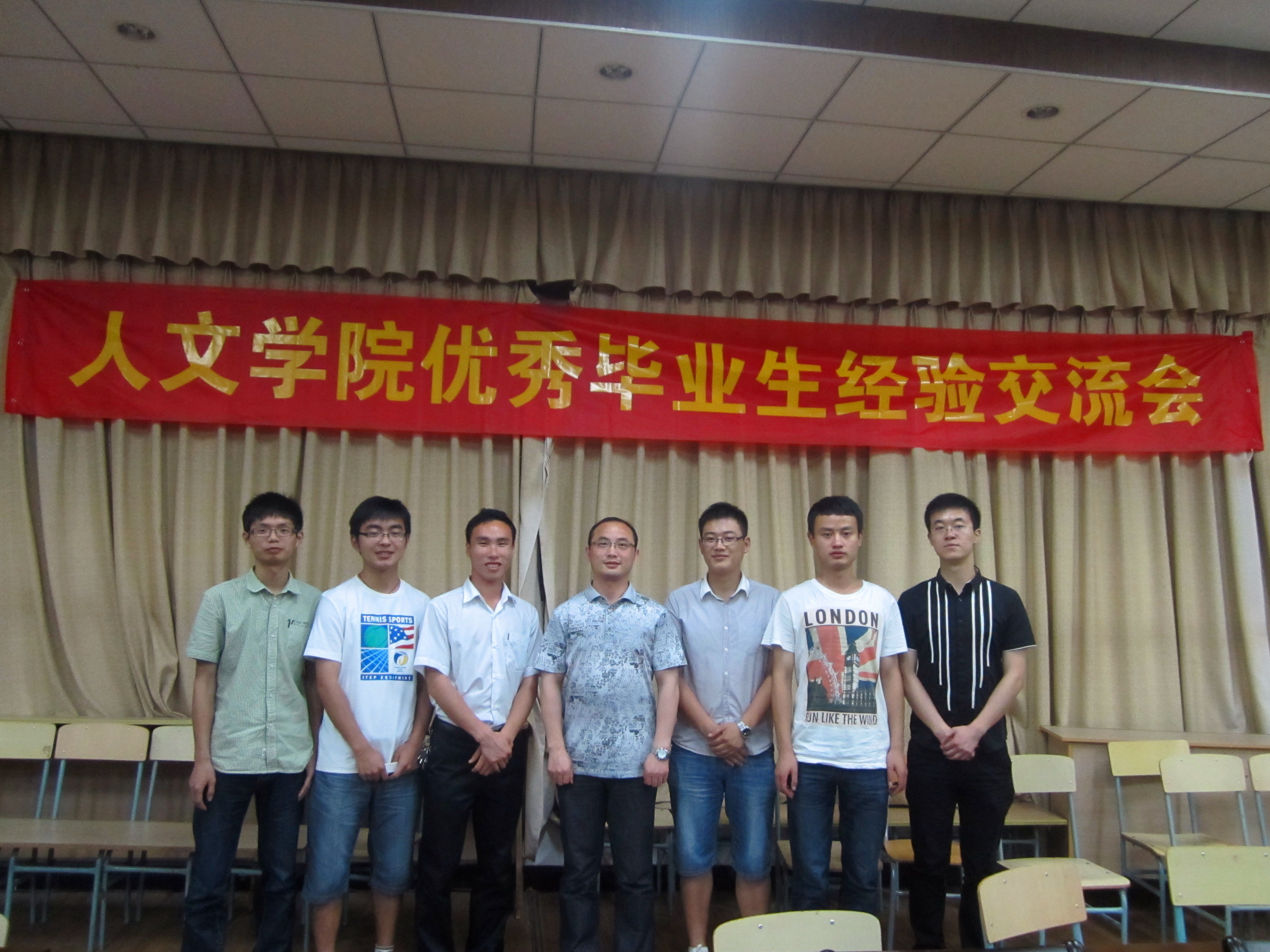 6月7号晚七时,由我院团委主办、学生分会承办的优秀毕业生经验交流会在院办504顺利举行。院团委书记陈小志,团委指导老师刘琳、宋琳及工学院就业负责人邹光响作为嘉宾出席会议。受邀参加本次交流会的优秀毕业生(均为党员)代表有:文学08班刘剑刚、公管08班肖崇玮、法学08班徐中冲和朱敏斌、管科08班侯鹏。