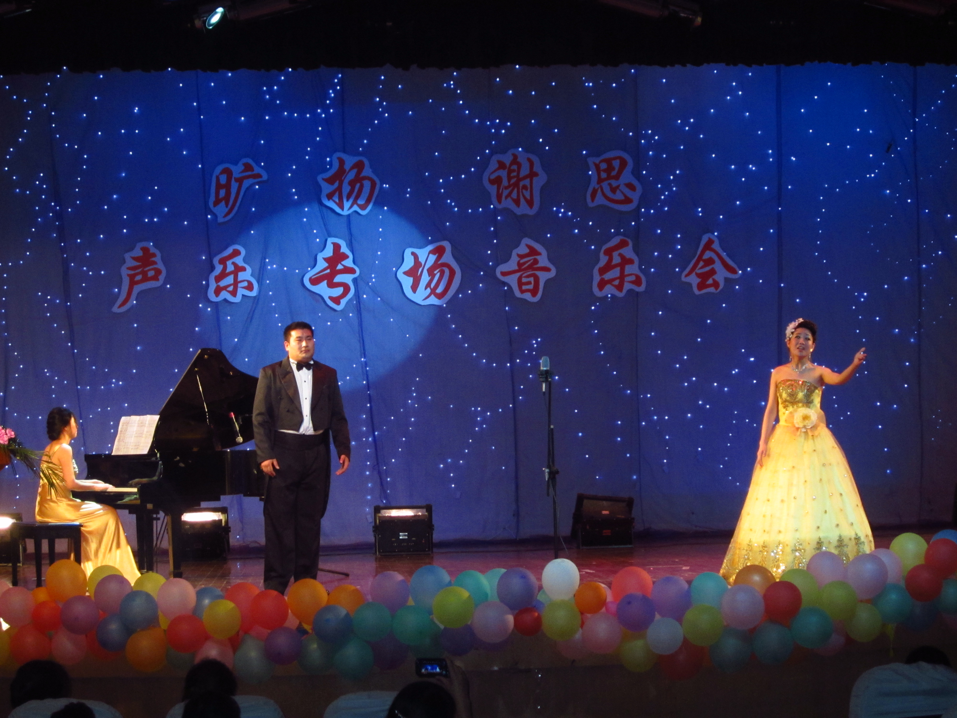 7点整,谢思以一首别具一格的湖南花鼓小调《洗菜心》拉开了音乐会的帷幕,旷扬和谢思两位演唱者轮换出场,带来了如《美丽家园》、《故乡是北京》、《乡音乡情》等一首又一首风格不一却共同体现出深深感恩情怀的歌曲,用生动细腻的歌声唱出了对家乡热土的深情赞美。接着,我院音乐系杨威老师、周婧老师现场弹奏钢琴,倾情伴奏,两位演唱者生动诠释了《断桥遗梦》、《蓝色爱情海》等经典曲目,表达了对男女纯真爱情的歌颂,将现场气氛推向高潮。音乐会上,旷扬、谢思还借此机会表达了对父母家人、授业恩师及所有帮助、支持她们的友人的诚挚谢意!最后,音乐会在欢乐的气氛中圆满落幕。