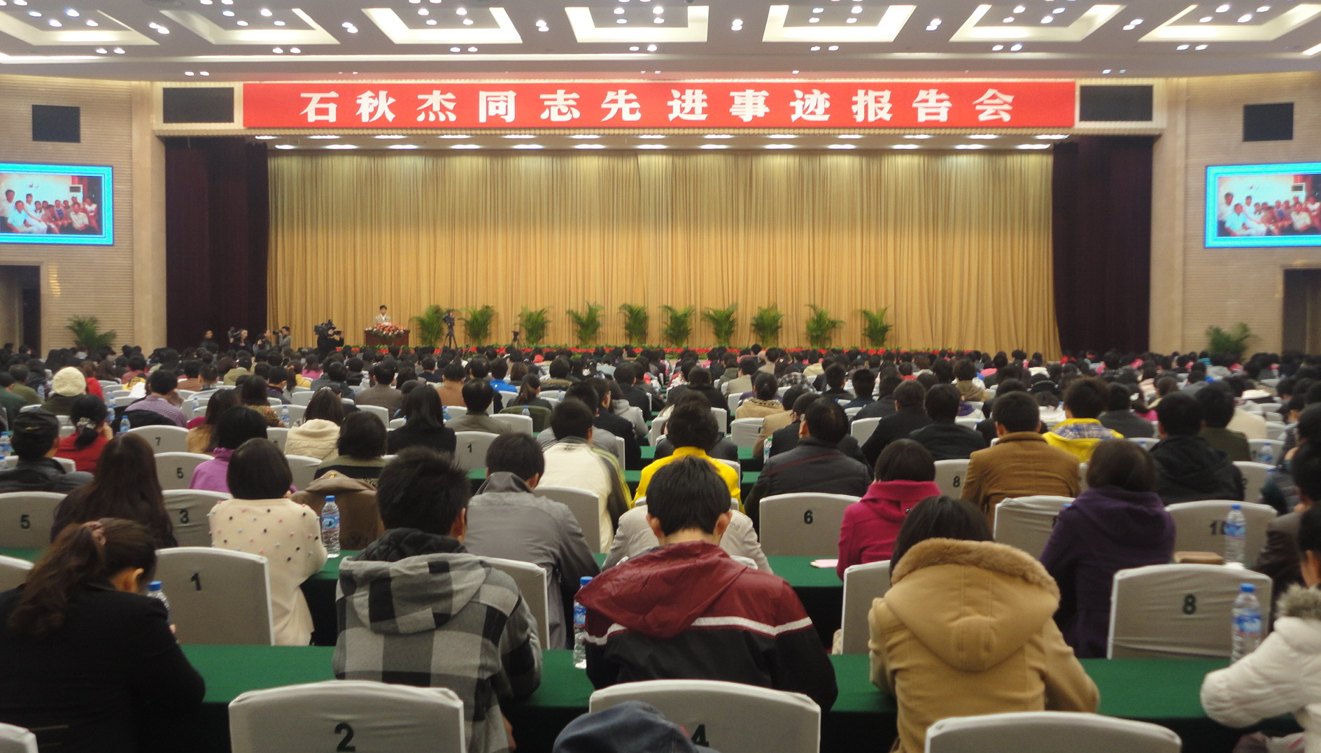 2012322上午930分,华亿平台师生代表在院团委书记陈小志的带领下来到了南昌市滨江宾馆滨江大会堂,怀着无比沉重的心情步入石秋杰同志先进事迹报告会的千人会场。报告会期间,石秋杰老师的女儿、同事、主治医生、江西日报记者和省广播电台主持人组成了报告团,他们分别从家庭、工作、友情、治疗期间的见闻和深度采访等方面的切身认识,动情而客观的诉说着石老师的先进事迹。人文与公共管理学院的师生代表们饱含热泪聆听并认真学习了石秋杰老师的先进事迹,以此拳拳之心缅怀这位人民教师的楷模。此次报告会由江西省委宣传部、省直机关工委、省委教育工委、省教育厅和南昌大学主办。