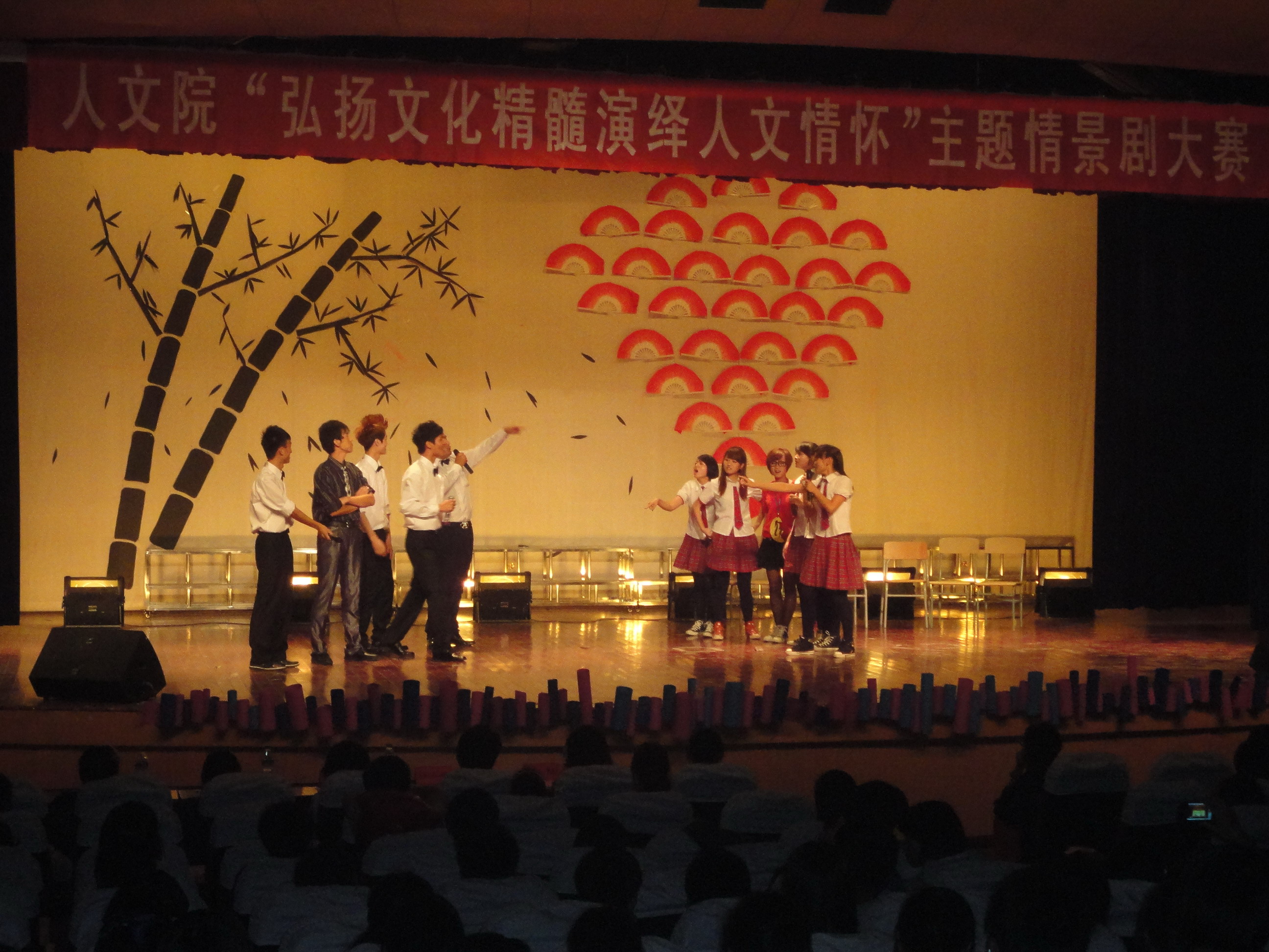 11月29日晚,人文与公共管理学院音乐厅灯火通明,由我院团委主办的“弘扬文化精髓,演绎人文情怀”主题校园情景剧在这里精彩上演。校长助理、组织部部长胡春晓教授,校学工部副部长、校团委副书记胡志坚老师,人文院院长宋秉斌教授,人文院团委书记陈小志,校团委指导老师屈婧等一行领导老师应邀莅临大赛现场并担任评委。