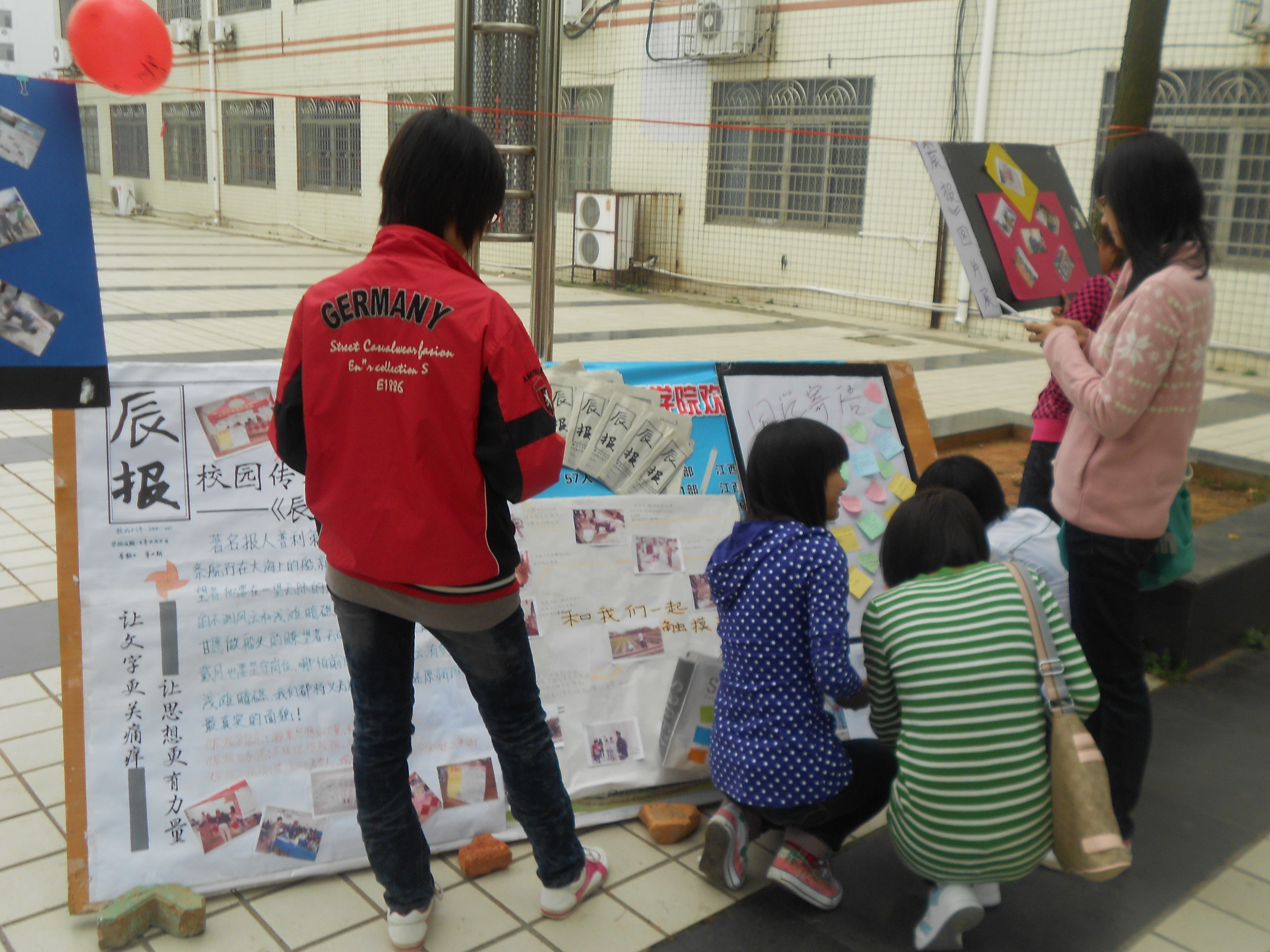 为迎接中国第十二届记者节,增强校园读报气氛,浓郁人文学院的人文气息,人文院《辰报》于11月5日在北区文化广场举行以“触摸真相,新闻记者同行”为主题的报展活动。