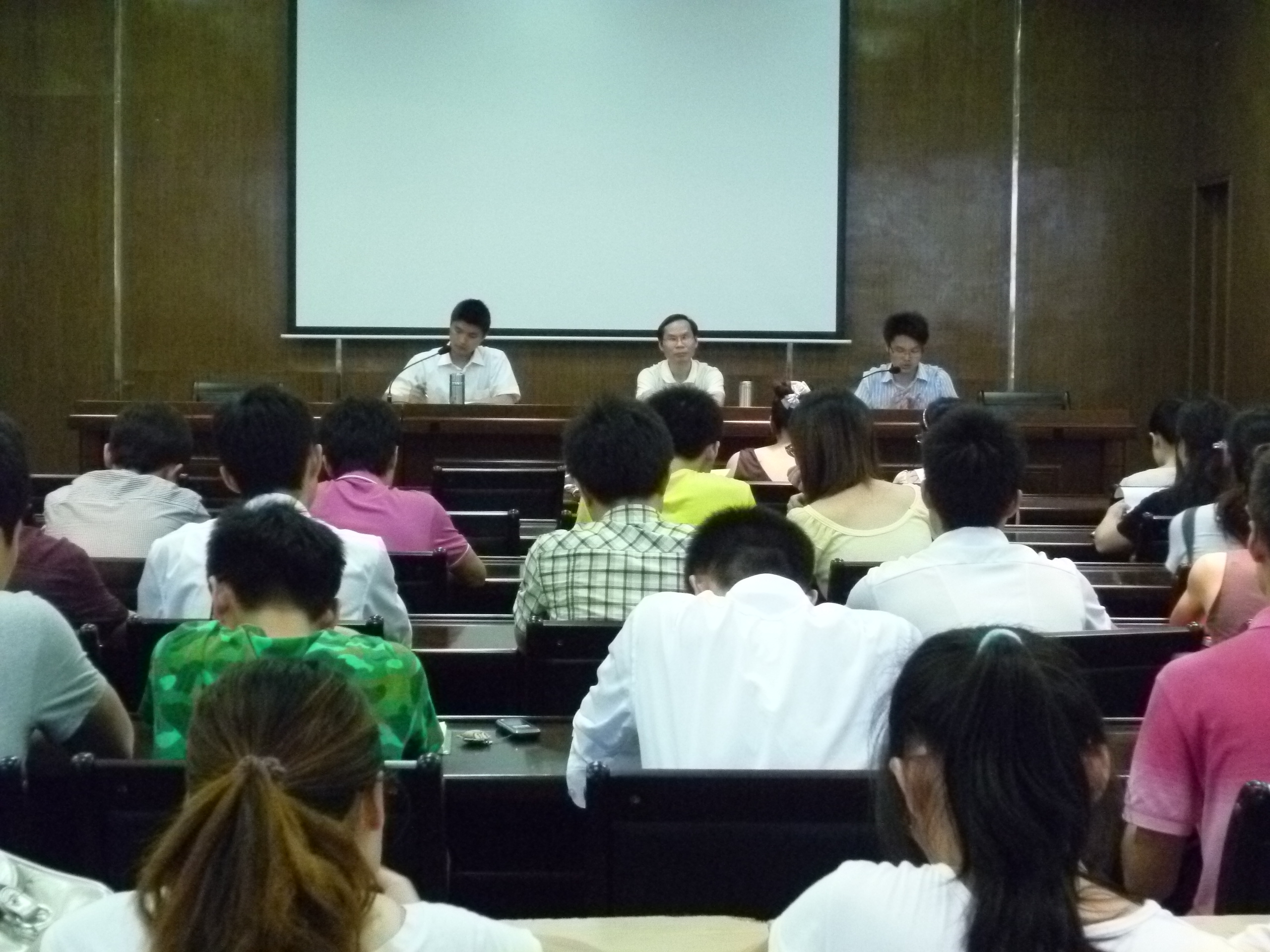 在考试周即将来临之际,为了确保我院学生诚信应考,展现我院良好的考风考纪,并确保学院宿舍调整工作有序、安全 、顺利地推进。6月23日晚,人文学院在院办五楼报告厅召开了诚信考试及宿舍调整动员大会。人文学院党委书记郭如良、党委副书记王志发、团委指导老师蔡火凤及各班班主任出席了此次大会。参加此次大会的还有人文学院新老一届主要团学干部,各班班长、团支书,2010级新生辅导员等。