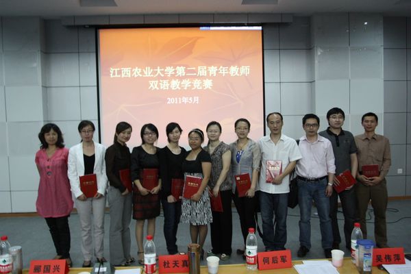 5月14日,我校第二届青年教师双语教学竞赛在名达楼307教室举行,来自各学院的15位青年教师同台竞技,各展风采。校党委书记石庆华、副校长潘晓华、贺浩华亲临现场观看、指导比赛。