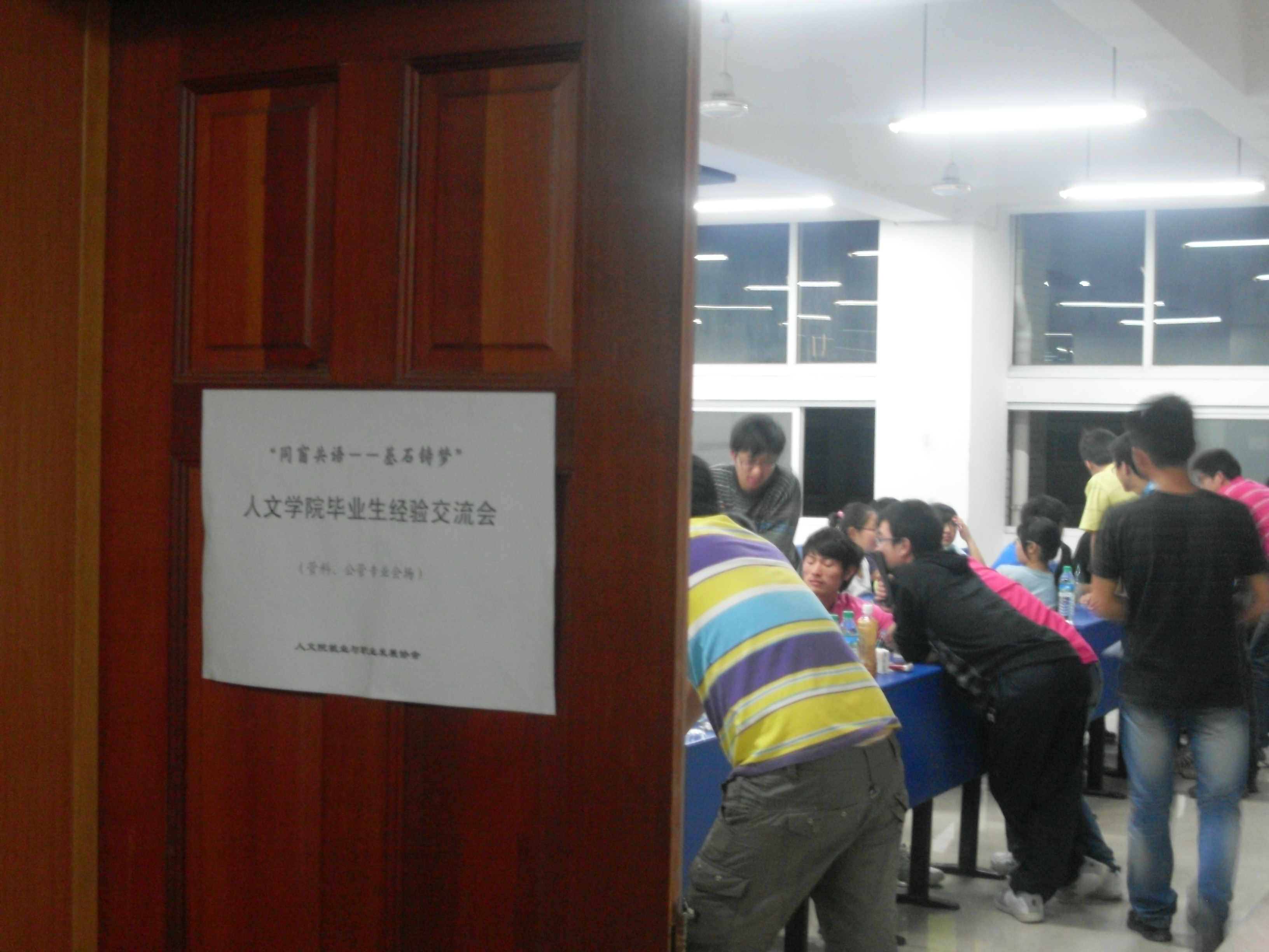 5月13日晚,人文与公共管理学院于先骕楼举行“同窗共语,基石铸梦”毕业生经验交流会活动,大约吸引各班级约200人参加。此次活动由院学工办(团委)、就业指导中心主办,院就业与职业发展协会承办。交流会根据专业相关性,分为管理系、法学系、中文系及音表系四个会场。活动现场的嘉宾有来自各专业的优秀毕业生代表,分为考研组、公务员组、就业组及创业组,有针对性的进行交流。