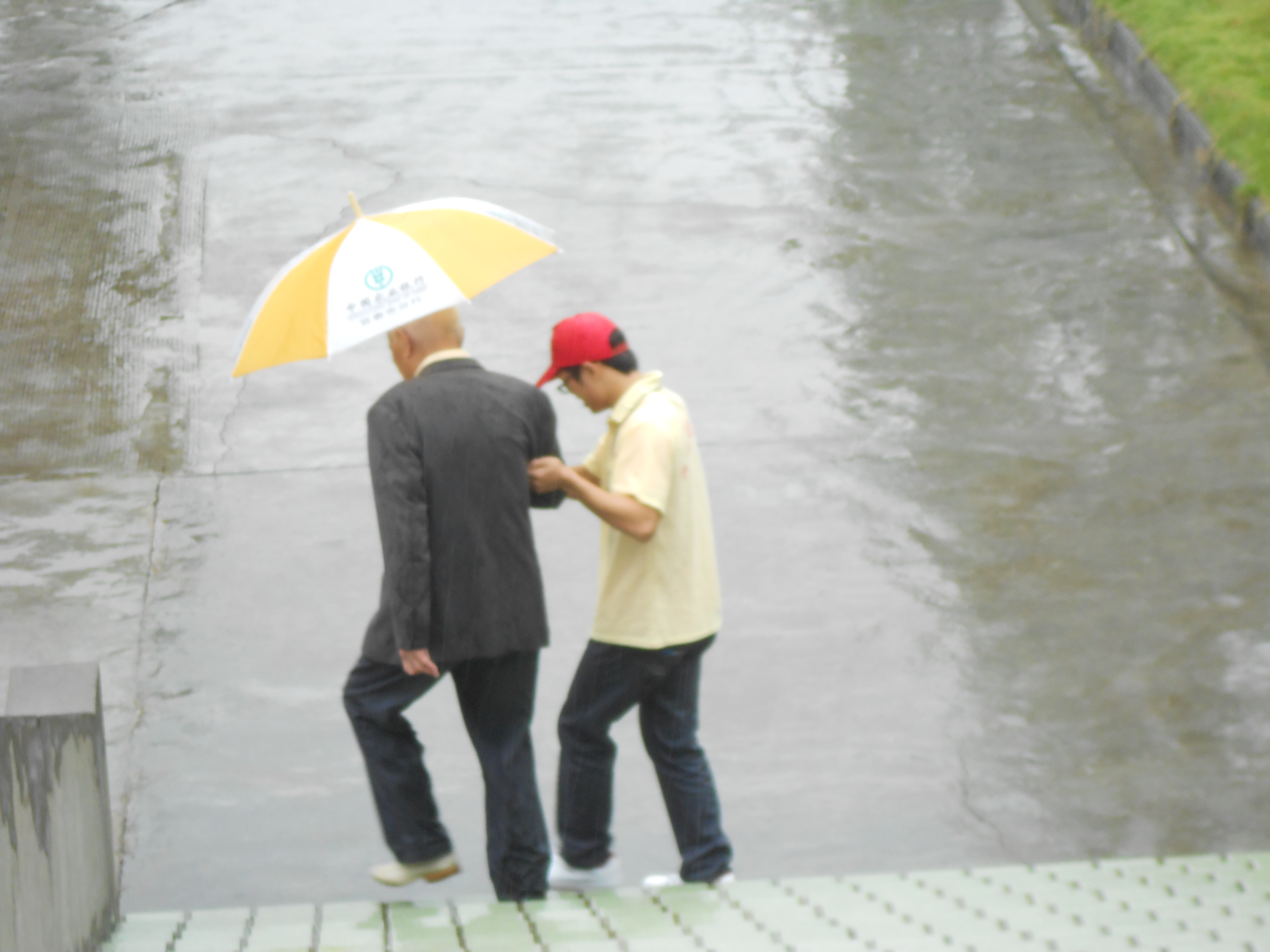 天公不作美,大风夹杂着雨“沸沸扬扬”,连撑伞都成问题。地面路滑,志愿者们不顾自己淋着雨尽心尽力地引导老人过马路,替老人撑伞,搀扶老人下阶梯并亲自送至会议现场,充分体现了志愿者的志愿服务精神,情景着实感人。