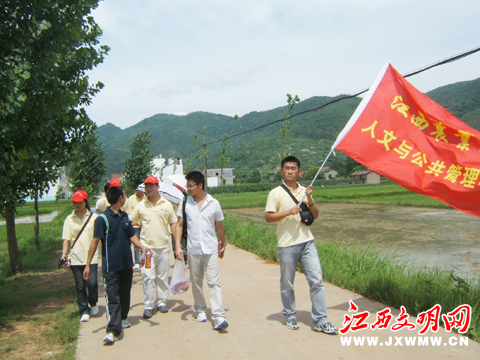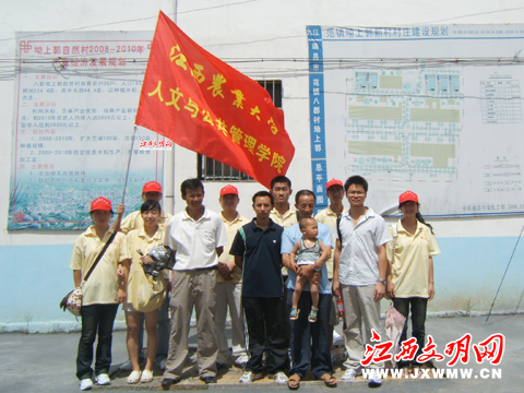 江西农大人文学院暑期“三下乡”社会实践营队在省级新农村建设示范点——八都村坳上郭感受农村新貌。