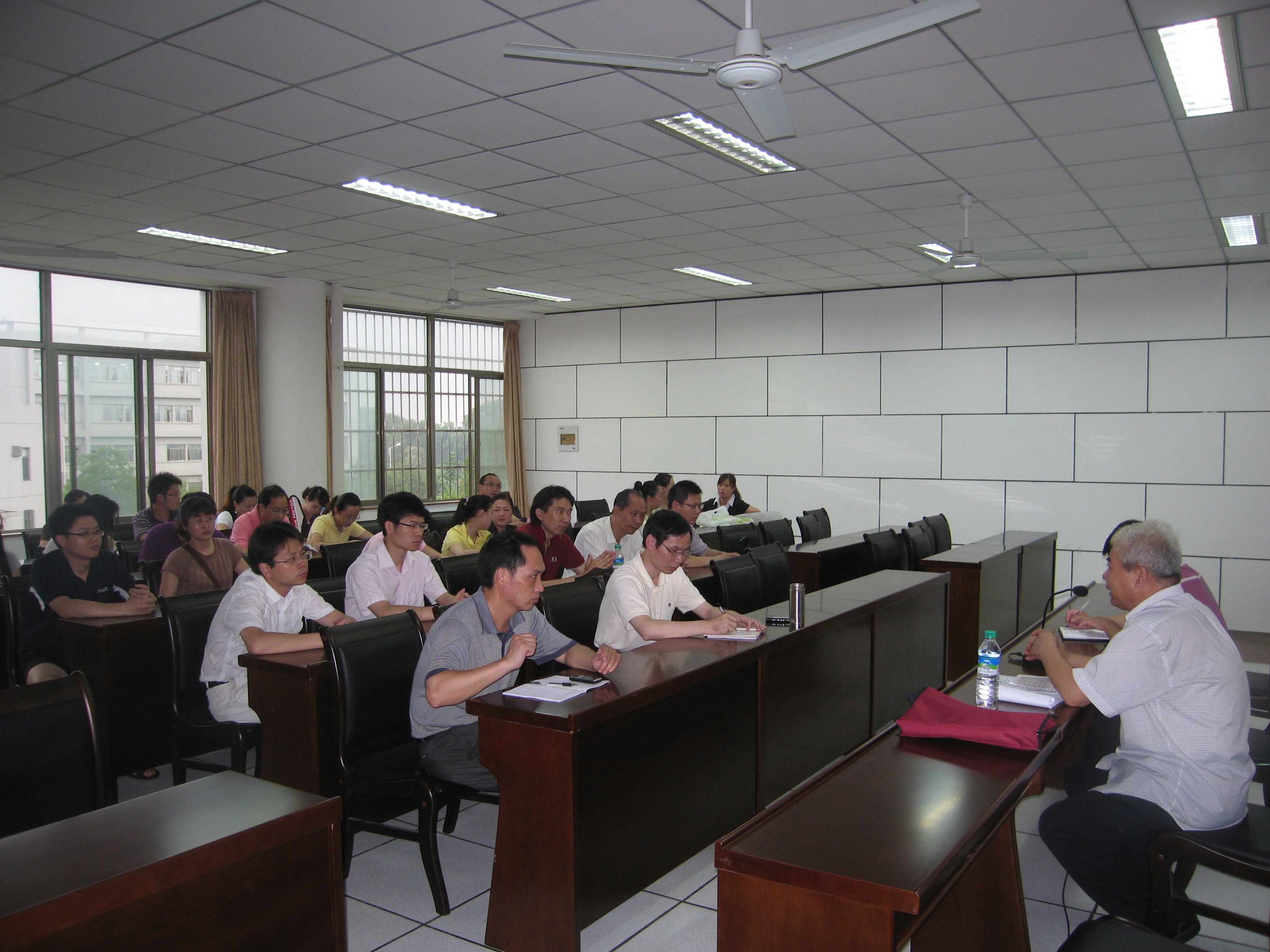 邓教授首先分析了大学教育的形势,指出国家重视人才的培养,而大学是国家培养人才的主要场所。邓教授指出:“大学教育在于‘精品课程教育’”。在如何发展高质量的大学教育上,邓教授认为要抓三个建设:教学质量、工程、课程建设。邓教授强调要着重加强对课程建设的认识,指出课程建设是一个大学教育的基础。最后,邓教授结合自身的教学课研经历,希望大家在教学课研中不仅要注重教学课研资料的的归类和整合,更重要的是具备为教学献身,终身从教,无怨无悔的精神,以及怀着一颗持之以恒、不断进取的教学之心。邓教授的报告会不时引起在场教职工的阵阵掌声。