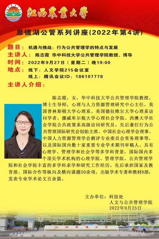 学术讲座预告:9月27日 行为公共管理学的特点与发展 陈志霞