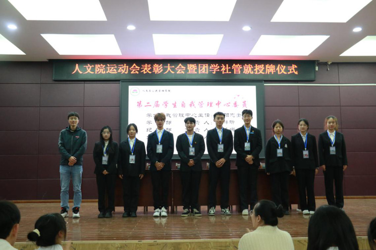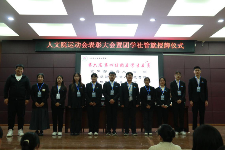 为庆祝我院运动员在此次校运会中取得的优异成绩,表彰先进、树立榜样,增强我院学生干部的工作责任心和集体荣誉感,11月14日晚,我院于大学生活动中心501举行运动会表彰大会暨团学社管就授牌仪式。院党委副书记曹人龙、全体辅导员、优秀运动员与教练员、团学社管就全体成员参与本次活动。