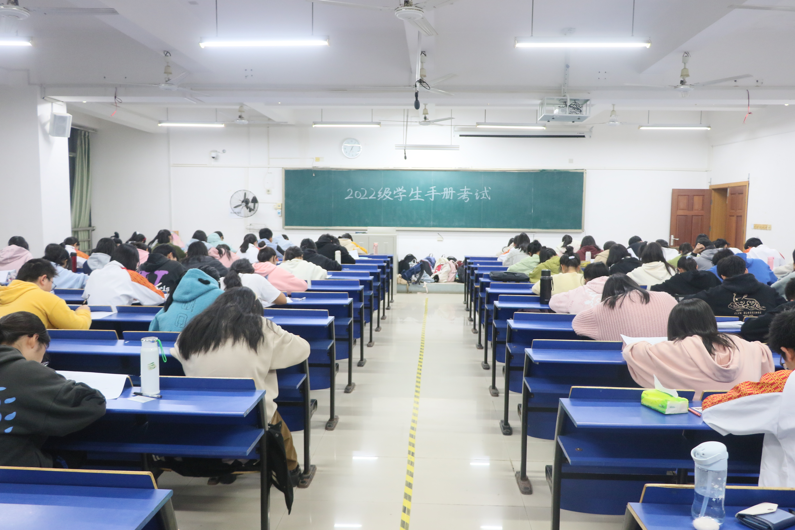 为增进我院新生对校情校史的了解、引导学生进一步加强规则意识,自觉维护并遵守学校各项规章制度,11月13日晚,我院于先骕楼组织2022级全体新生进行《学生手册》考试,政治辅导员黄佳巡查了考场情况。