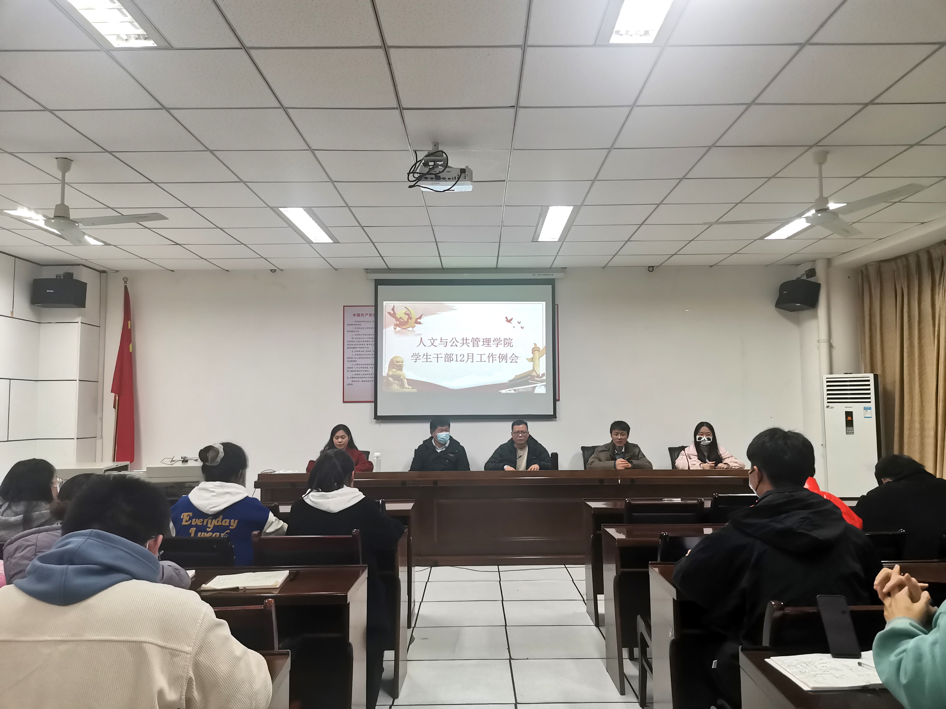 12月8日,学院于院办大会议室召开学生干部12月工作例会。院党委副书记曹人龙、学工办指导老师及全体学生干部参加本次会议。
