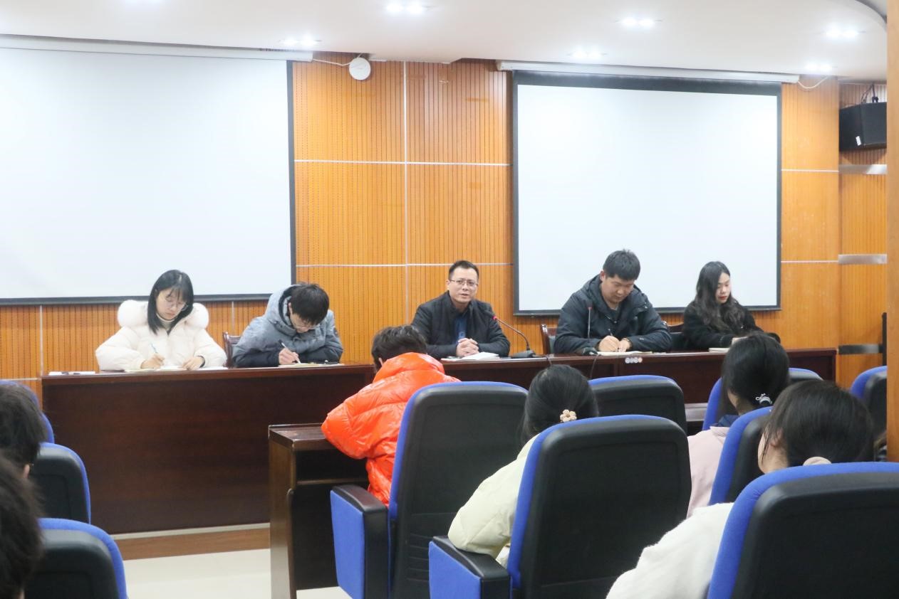 会上,各位辅导员老师分别围绕学院就业工作、团委工作、学生管理、资助工作及学生干部作风建设五个方面做了工作部署。袁梁老师重点强调了就业工作的重要性,鼓励毕业班班长深入了解本班就业工作情况。文君老师明确了团支书的职责和毕业档案对接的注意事项。黄佳老师就学风建设工作、文明创建工作、宿舍及电动车用电安全和反诈防诈宣传等学生管理工作了进行了详细部署。李文瑞老师对学生资助与奖学金评定工作进行了安排,详细介绍了评定对象、名额分配以及时间安排等。最后,曹人龙总结了会议内容,对学生干部提出了要求,他表示,学生干部作为班级的骨干,一要牢记学生身份,增强学习能力;二要恪守学生本分,强化规矩意识;三要强化责任担当,树牢服务意识;四要不断提升自我,积极向党组织靠拢。