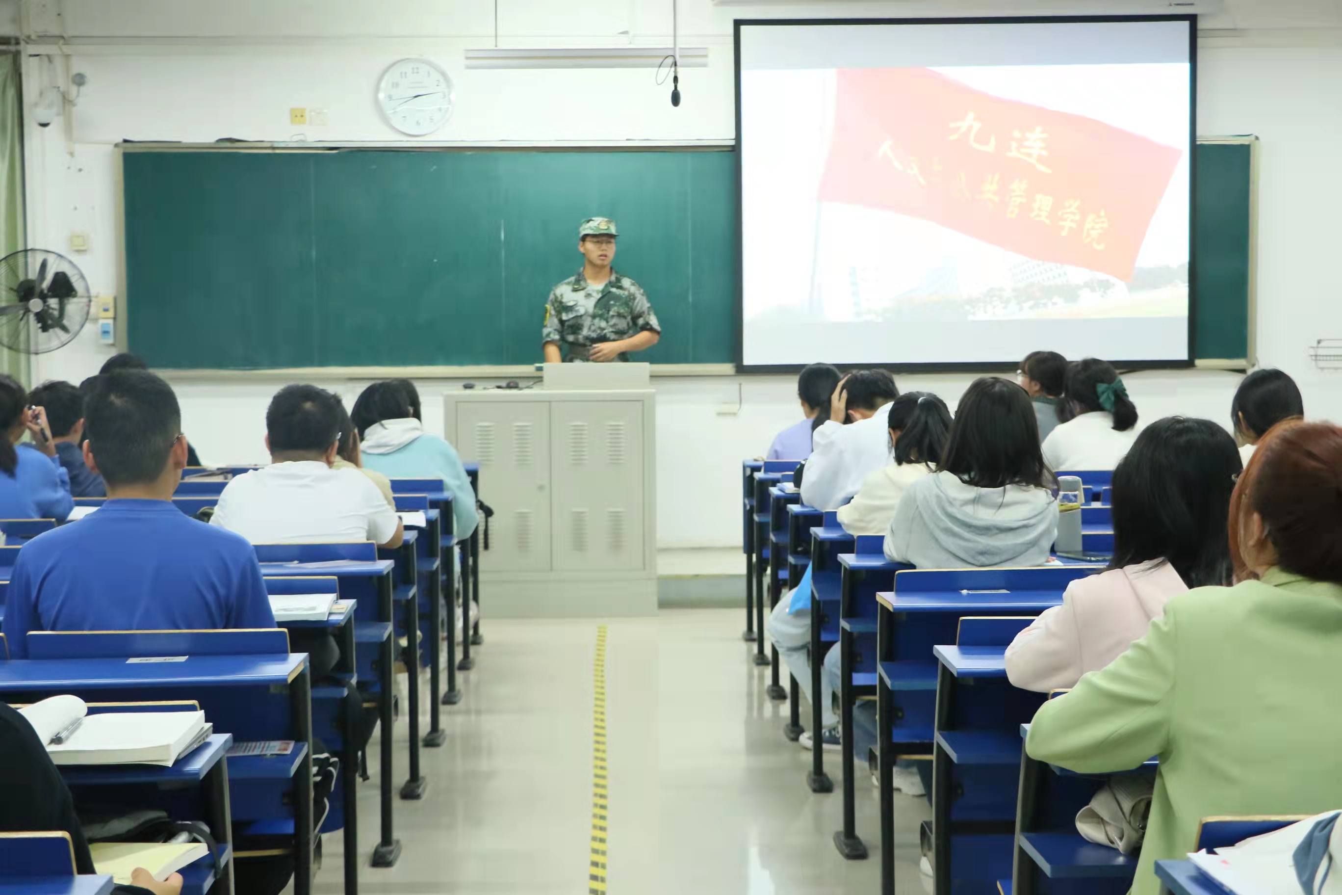 为深入开展党史学习教育,进一步增强我院学子爱国意识和国防意识,鼓励和吸引优秀大学生参军入伍、投身军营建功立业,10月13日晚,我院团委组织安排新生军训教官队成员在先骕楼面向全院新生进行征兵宣讲。