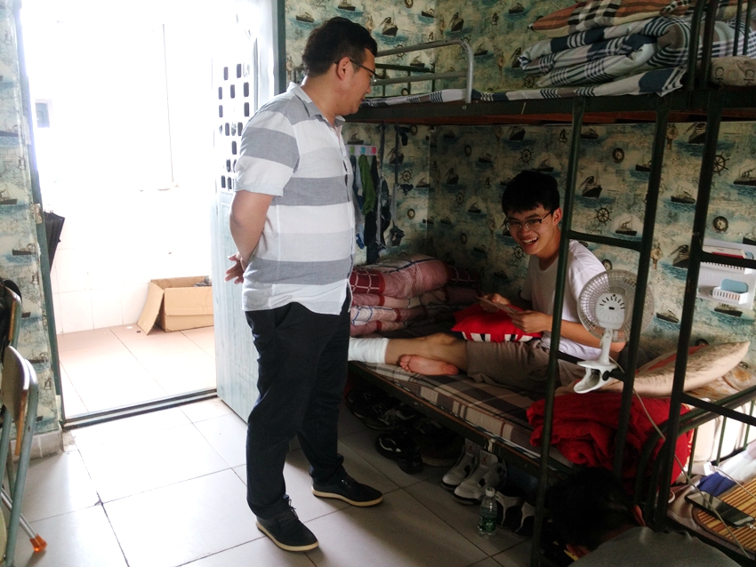 据悉,该同学是我院学生会学习部的一名干事,在进行学风抽查工作的过程中不慎从楼梯摔倒造成左腿中度骨折。在该学生寝室,鹿老师亲切地与其进行交流,询问身体受伤情况,再三嘱咐该同学要安心养伤,争取早日康复返回课堂。该同学对学院老师的亲切关心表示感谢,并表示今后将更加努力做好本职工作,为学院学生工作添砖加瓦。鹿老师强调,大家要向学习该同学辛勤工作的无私奉献精神,但在日常工作生活中要注意安全,谨防类似事故再次发生。
