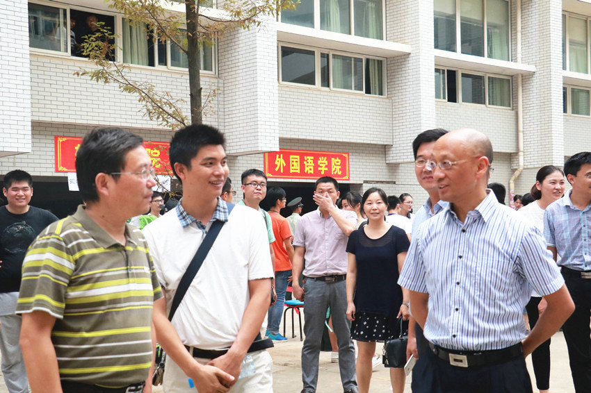 此外,我校校长黄路生院士等一行人也走访了我院新生注册报到点,对我院的迎新工作进行了指导。我院院长宋秉斌、党委副书记王志发、团委书记陈小志、团委副书记王桂兰、团委指导老师鹿光耀也深入迎新一线,在对工作人员表示慰问,并叮嘱同学们要认真熟悉工作,使整个入学流程能够顺畅无误地进行,为新生提供更好的服务,以饱满的热情和高质量的服务去赢得家长和新生的肯定。同时,我院领导也与新生进行了亲切的交谈,希望新生们能够在大学校园学习到更多专业知识、锻炼自我的能力。