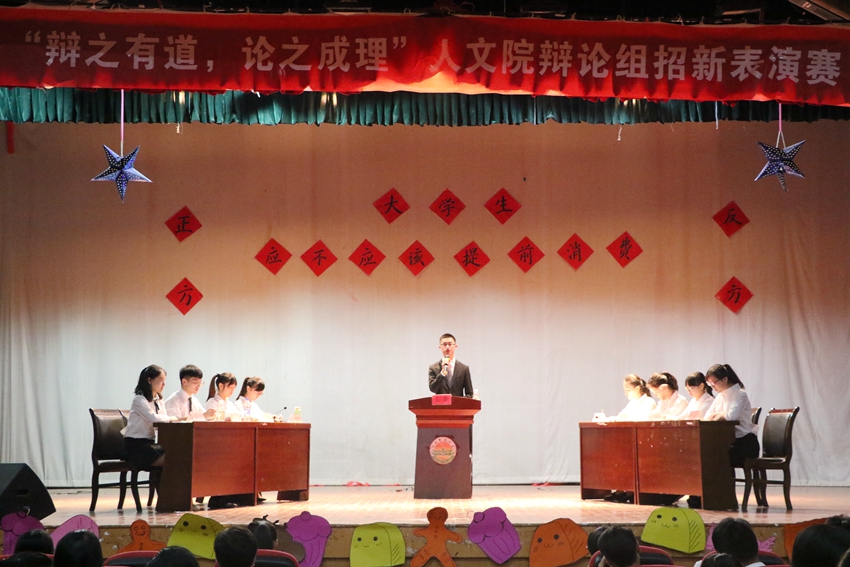 本次表演赛不仅展现了我院辩论组的辩论实力,彰显了我院学子的风采,也有利于辩论组在招新阶段吸收更多的优秀人才,促进我院辩论组的蓬勃发展。(宣传部 林枫 仲双)
