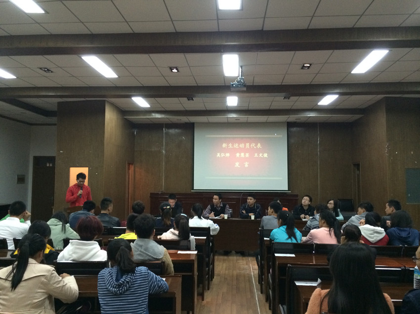 为迎战第40届校运会,我院于11月9日晚在院办504举行运动会动员大会。院党委副书记王志发,团委指导老师王桂兰、宋琳、谢园琳、冷球先出席本次会议。