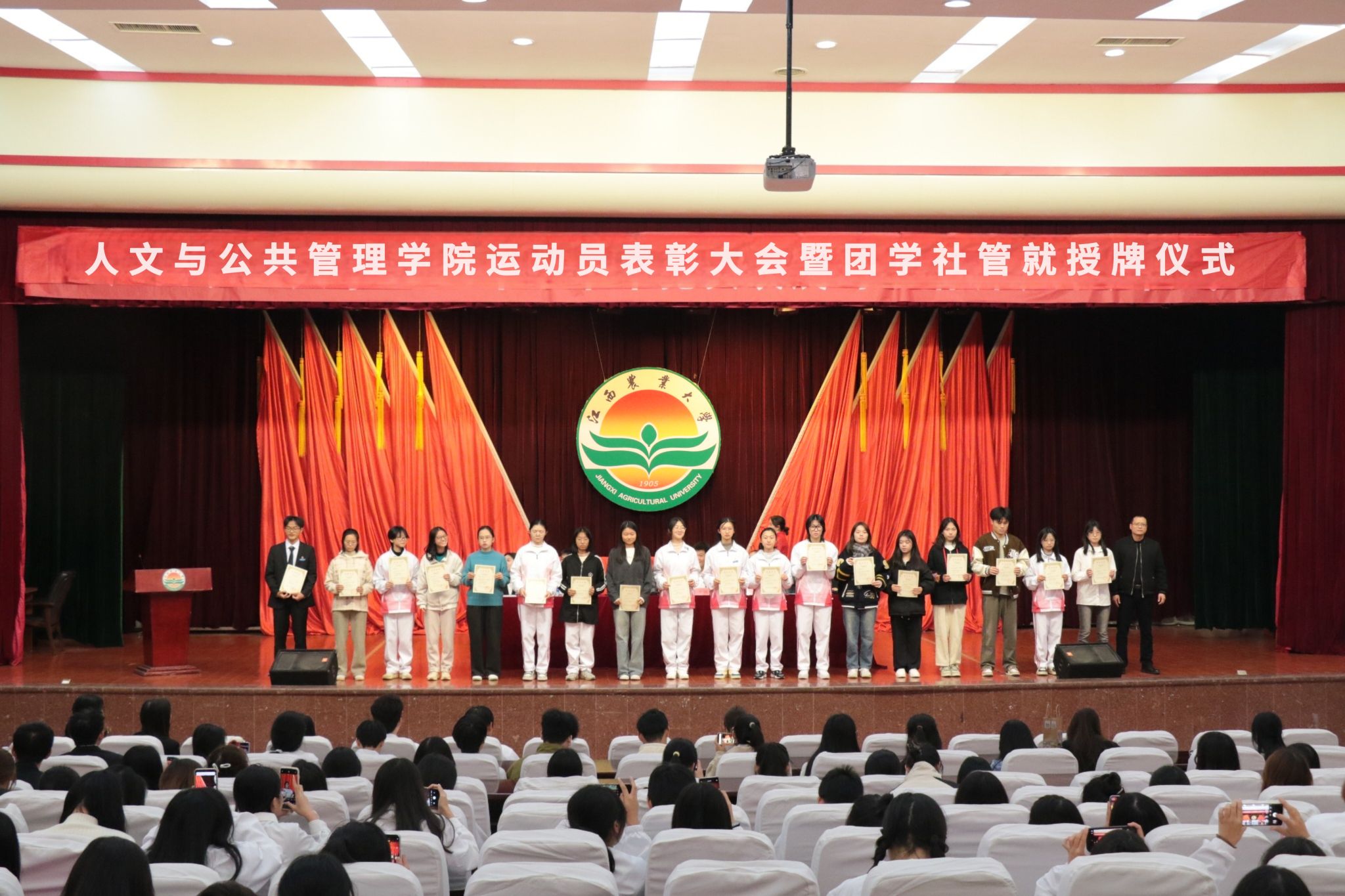 青春因磨砺而出彩,人生因奋斗而升华。此次表彰大会的成功举办,不仅展现了我院运动员积极进取的精神风貌,也为我院体育事业的发展注入了新的动力。授牌仪式的圆满落幕,则为我院学生干部队伍注入了新活力,有效激发了学生干部的工作热情,提升了队伍的整体素质与凝聚力。