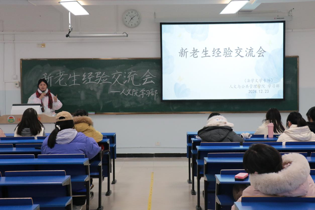 为充分发挥优秀学生朋辈引领作用,引导大一学子合理规划大学生活,12月23、25日晚,我院分别于五教107、108及315教室举办2024年新老生交流会。本次交流会由我院团委主办,分别邀请我院汉语言文学2201班邱晨、法学2202班刘俞希、公共事业管理2202班贺雨婷和音乐学2201班涂马丽等十一位学姐学长作经验分享。