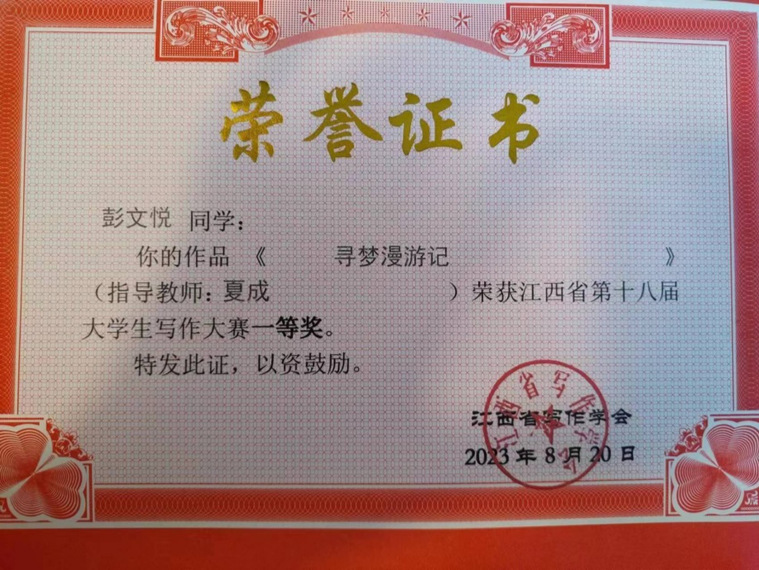 日前,江西省写作学会公布了第十八届江西省大学生写作大赛评选结果,我院中文系学生共有30人获得奖项,其中一等奖5项,二等奖10项,三等奖15项。