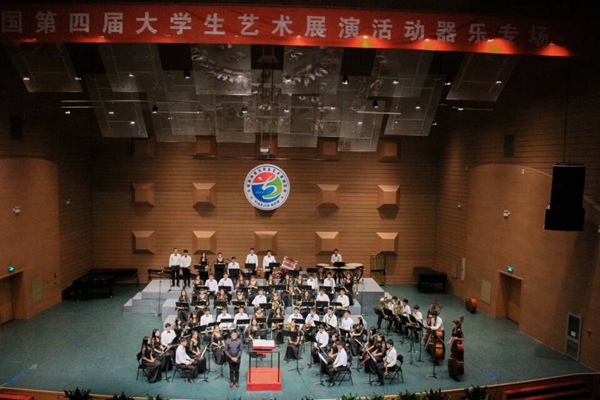 全国大学生艺术展演活动是目前国内规格最高、规模最大、影响最广的大学生艺术盛会。我校军乐团60名队员,全部由非专业学生组成,在指导老师杨巍、贺媚、黄玲的悉心指导下,以进校时音乐零基础的水平,经过3年的刻苦训练,终于登上全国大学生最高艺术殿堂,为学校赢得了荣誉。(校团委供稿)