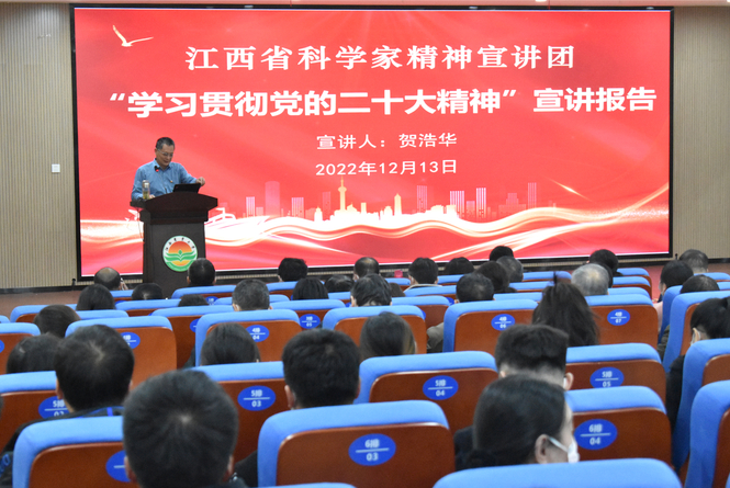 为深入学习贯彻党的二十大精神,12月13日下午,党的二十大精神宣讲报告会暨江西省科学家精神宣讲报告会在校图书馆报告厅举办。校党委委员、副校长、江西省科学家精神宣讲团团长贺浩华作了《初心不改,逐梦种业,勇攀高峰》报告。我院领导班子和部分师生代表参加报告会。