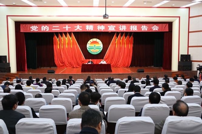 10月27日下午,我校举办党的二十大精神宣讲报告会,党的二十大代表、第二十届中央候补委员、中国科学院院士、校党委书记黄路生作宣讲报告,我院副处以上干部、各党支部书记现场聆听报告。