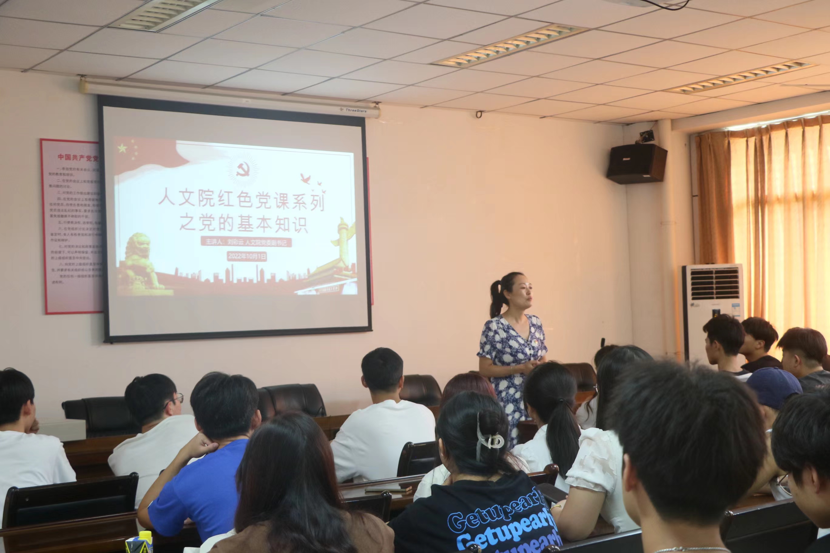 为庆祝中华人民共和国成立73周年,深入贯彻落实党史学习教育,赓续共产党人精神血脉,10月1日下午3时,我院党委副书记刘彩云于院办215室为我院本科学生第二党支部学生讲党课。