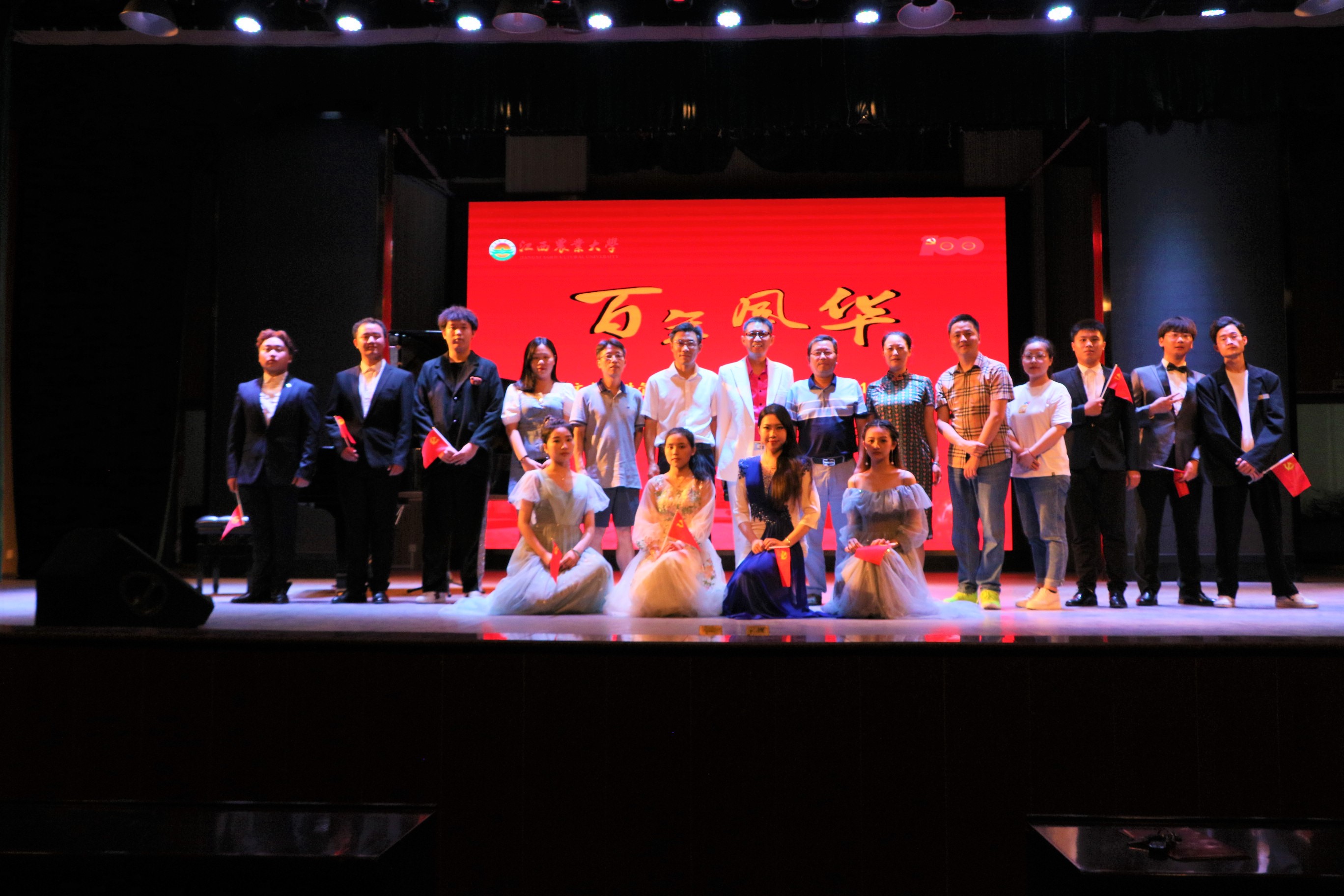 从石库门到天安门,从兴业路到复兴路,百年沧桑,百年辉煌。中国共产党立志于中华民族千秋伟业百年风华恰是风华正茂。本次音乐会以“百年风华”为主题,以史串歌,以歌叙史。经典红色歌曲,串联起百年党史救国、兴国、富国、强国的红色印迹,在歌声中呈现一幅幅波澜壮阔的历史画卷赣南民歌《十送红军》情真意切,讴歌了革命先辈为追求人民解放、民族独立的英勇无畏表达革命根据地人民对红军的深厚感情对革命胜利的强烈期盼歌剧《白毛女》荡气回肠,旧社会把人变成鬼新社会把鬼变成人”,唱出了翻身农民得解放,唱出了没有共产党就没有新中国“唱支山歌给党听,我把党来比母亲,母亲只生了我的身,党的光辉照我心……”《唱支山歌给党听》深情告白,党员师生唱红歌、知党史、感党恩、听党话、跟党走。《不忘初心》气势豪迈,嘹亮的赞歌汇聚成一个民族赓续奋斗的初心汇聚起奋进新征程的磅礴力量。