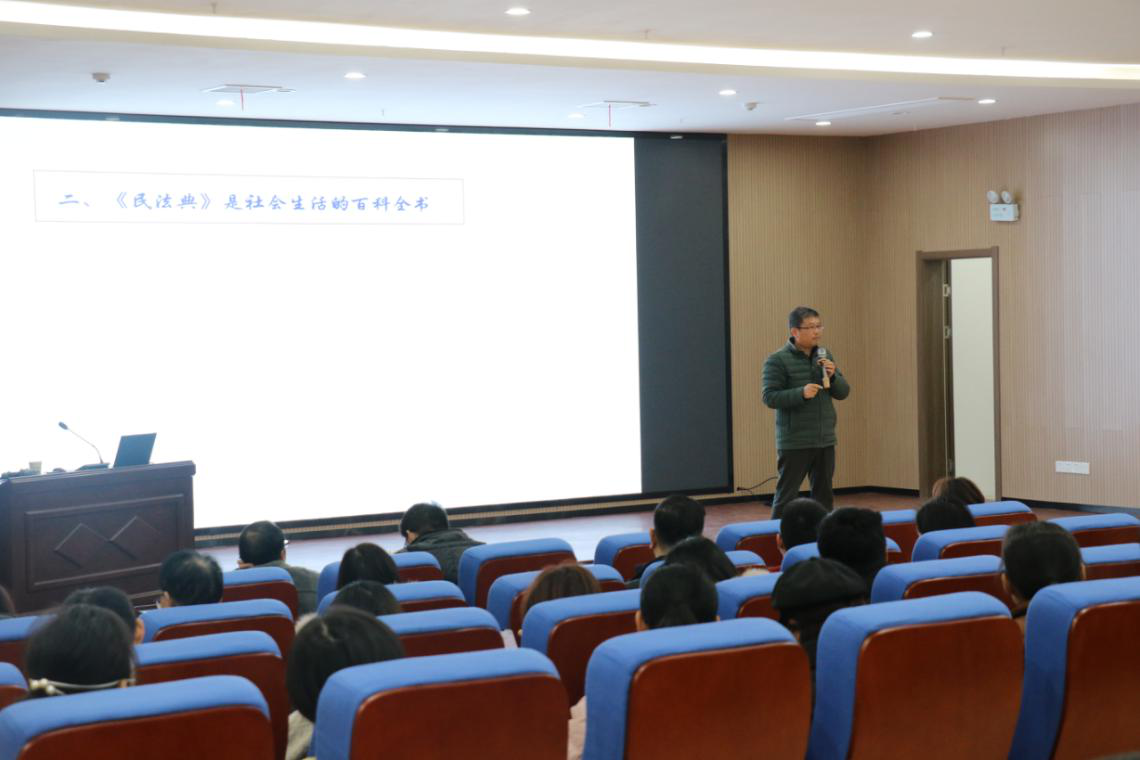 《中华人民共和国民法典》已于2020年5月28日由第十三届全国人民代表大会第三次会议通过,将于2021年1 月1日起施行。为深入贯彻落实习近平总书记重要讲话精神,认真学习、准确理解、严格执行民法典,引导人民群众学好、用好这部法律,根据校党委宣传部的统一部署,在前期学习宣传的基础上,校属各单位近日积极行动,邀请我院法学专业教师做深度辅导报告,提升《民法典》学习效果。
