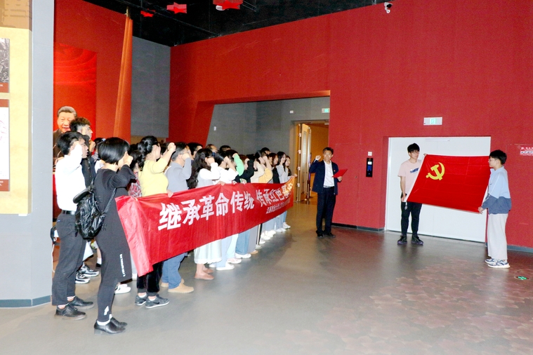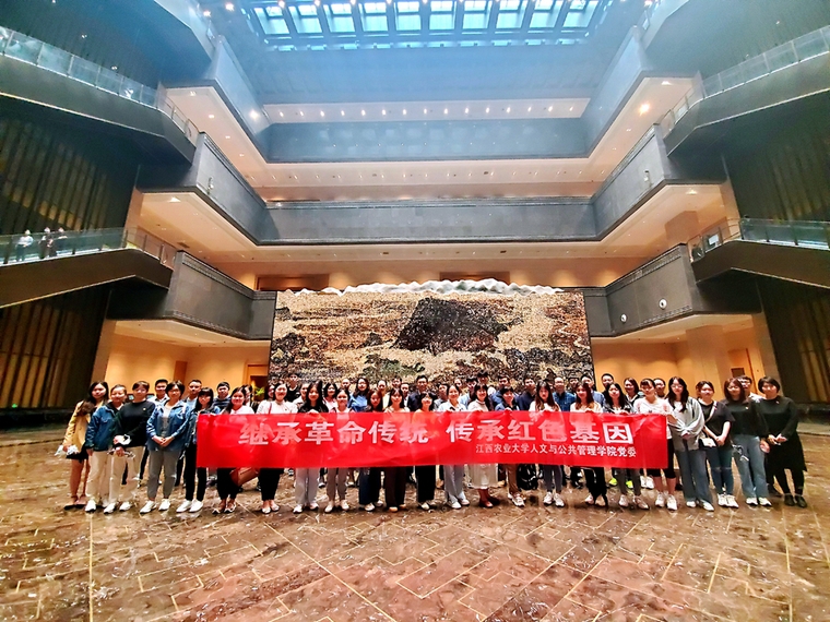 感悟历史厚度,重忆激情岁月。下午3时整,我院师生党员佩戴党员徽章,列队进入江西省博物馆。省博物馆副馆长叶蓉对我院师生的到来表示热烈的欢迎。在讲解员的带领解说下,我院师生党员认真参观了“红色摇篮”——江西革命史陈列馆。通过参观曙光映照、军旗升起及星光燎原等八个主题的展览内容,党员们共同追忆了展品背后的红色故事,回顾老一辈无产阶级革命家在江西红土地上筚路蓝缕、艰辛奋斗的伟大革命历程,重温了八一南昌起义、中华苏维埃共和国诞生等一系列波澜壮阔的壮烈史诗。