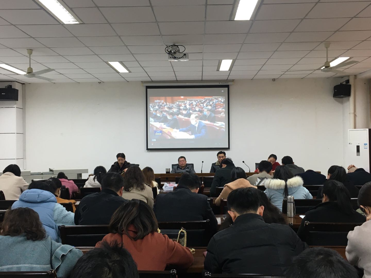 会议伊始,学院组织全体教职工在院办大会议室以观看视频形式认真学习习近平总书记在党史学习教育动员大会上的重要讲话。