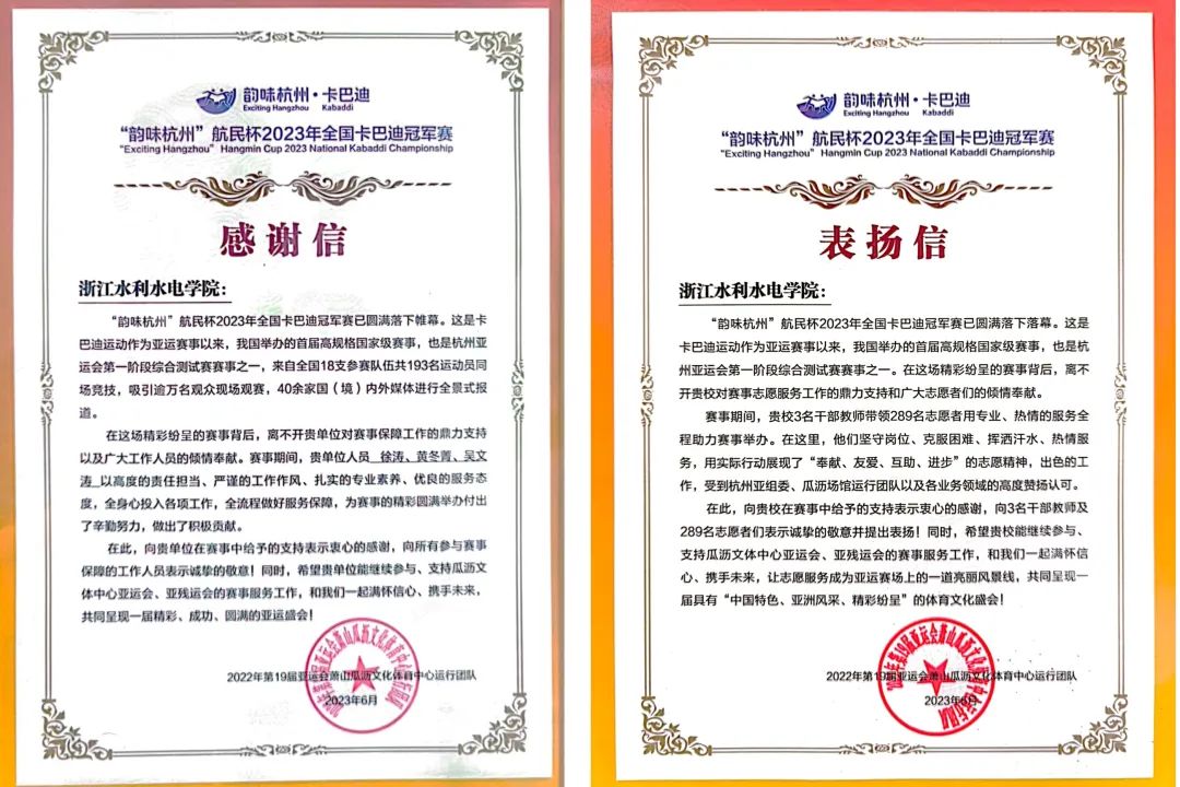 近日,杭州亚运会组委会办公室向浙江水利水电学院发来《关于表扬“红色领杭·奉献亚运”大考大赛暨“六大行动”先进集体和个人的通报》,我院校友、该校团委副书记、国际教育交流学院党总支副书记徐涛从上万名工作人员中脱颖而出,荣获先进个人荣誉称号。